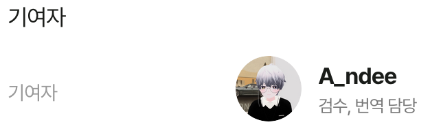 저는 버츄얼 유튜버 자막 팀 감람스톤에서 영어 번역 / 검수자로 일하고 있습니다. (2022. 11. ~)